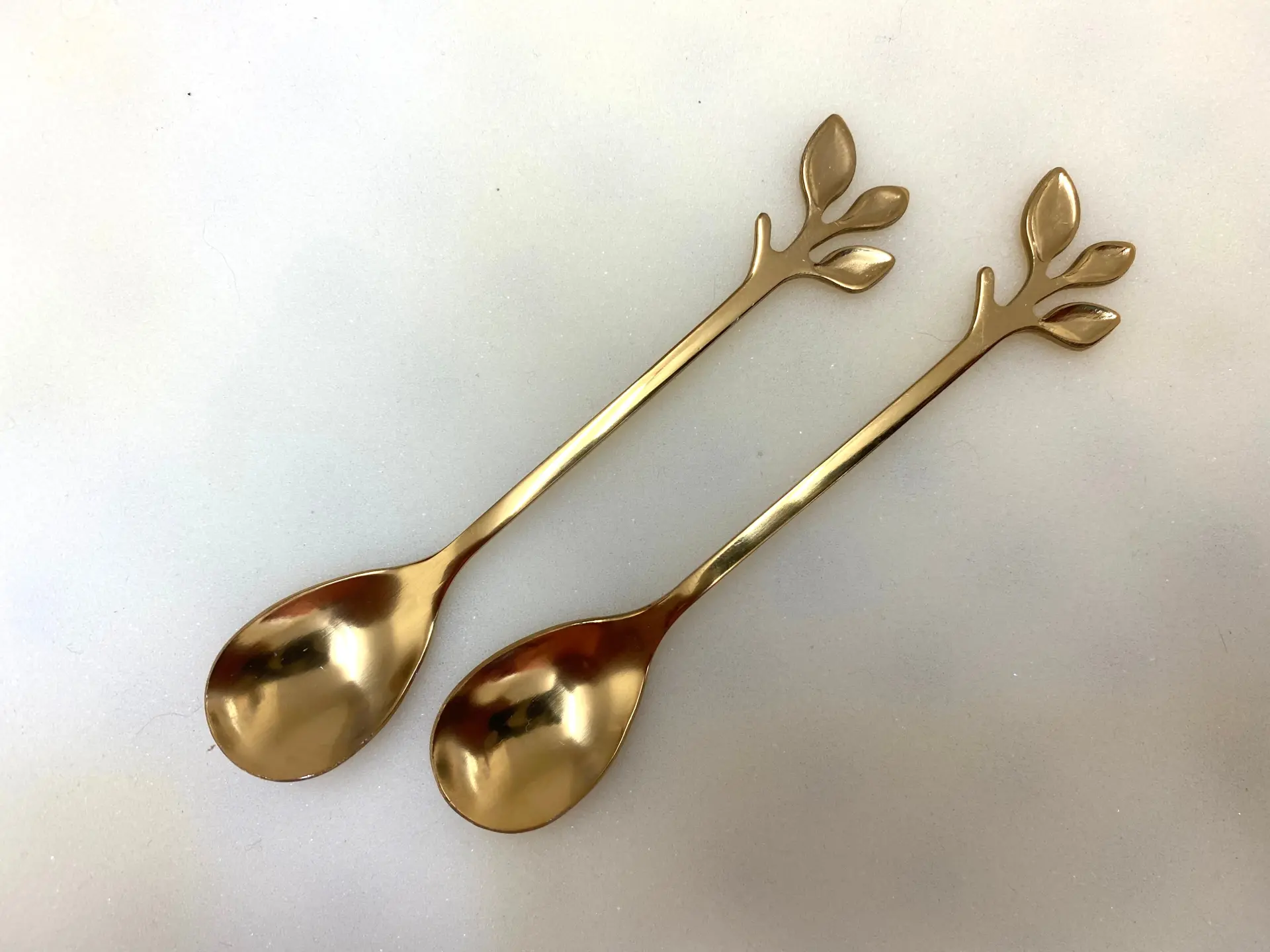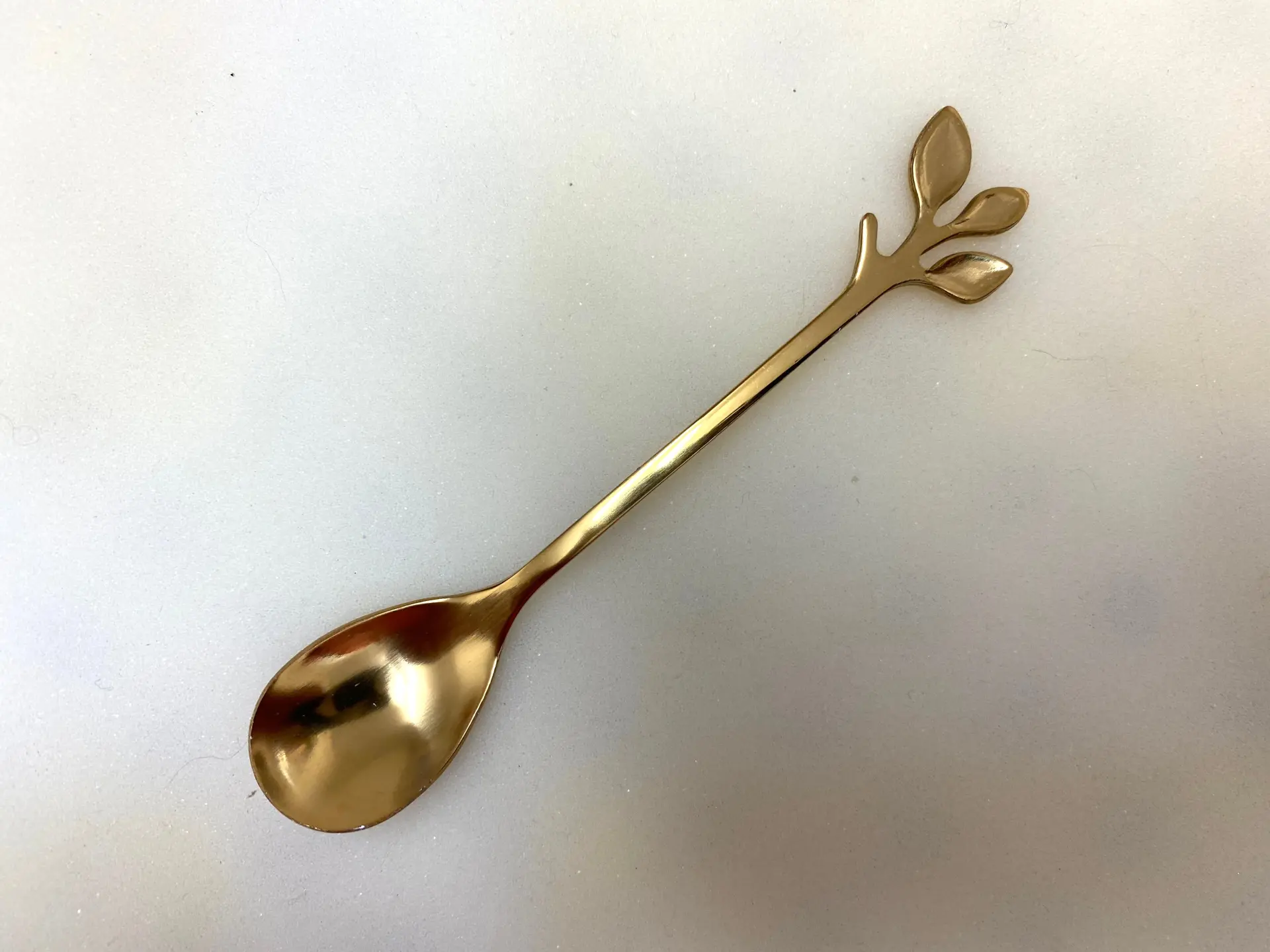 Beautifully made stainless steelspoon with gold finish and leaf design is perfect for our sugar bowls and jam pots.