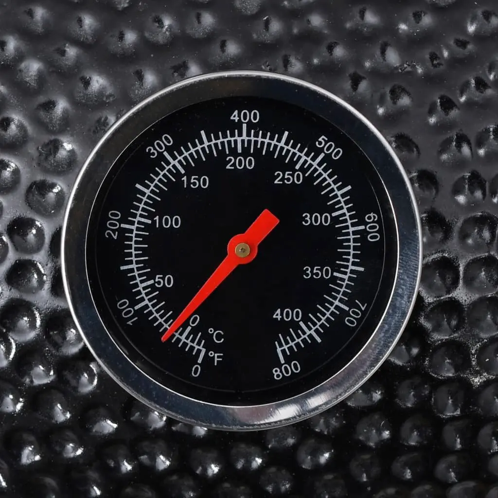 This ceramic Kamado grill can use coal or wood for fuel and has a large cooking grid with a diameter of 33 cm. This Kamado grill can be used for grilling, baking, smoking, cooking or just keeping your food warm. This ceramic barbecue has a very sturdy hinged lid with a vent and a built-in thermometer. Thanks to the layered vent, you can control the air flow as well as the temperature with ease. The two collapsible side shelves give you a place to keep your BBQ tools and cooking accessories close at hand. The high-quality ceramic with glazed, pitted exterior finish is not only durable and aesthetically pleasing, but makes for a unique cooking process that adds flavour to the food, while keeping it exceptionally tender! The stainless steel feet add extra stability to the grill. Ideal to cook a wide range of food such as burgers, fish, and ribs, our Kamado barbecue grill will surely offer you and your friends great BBQ fun!