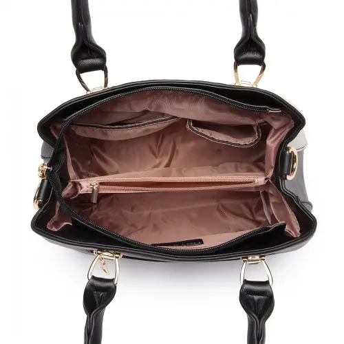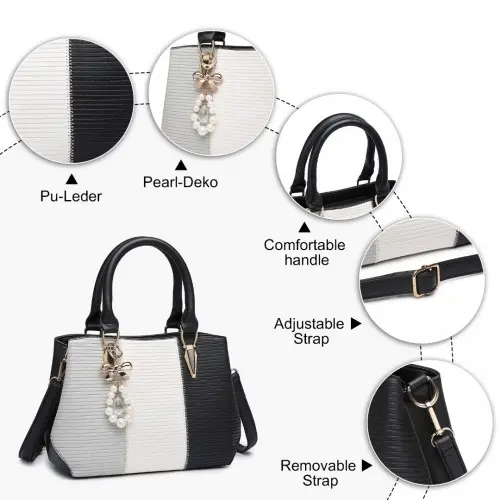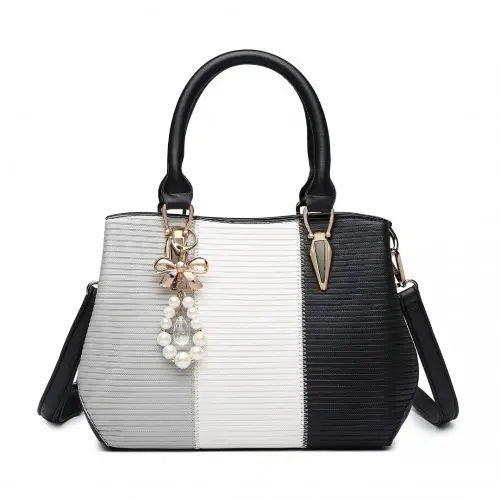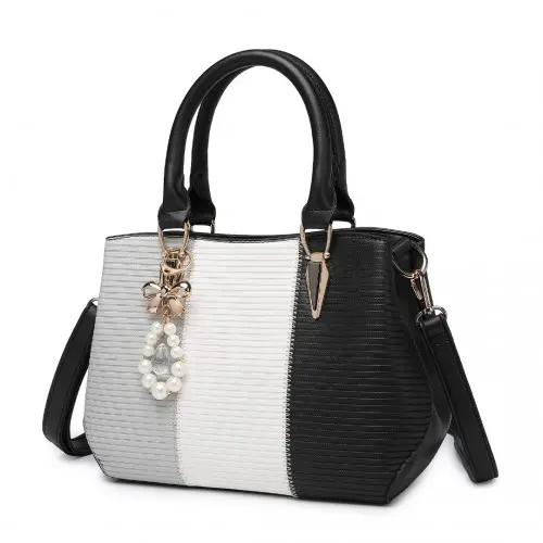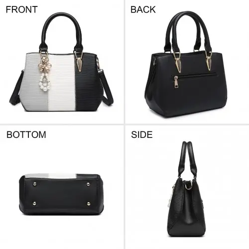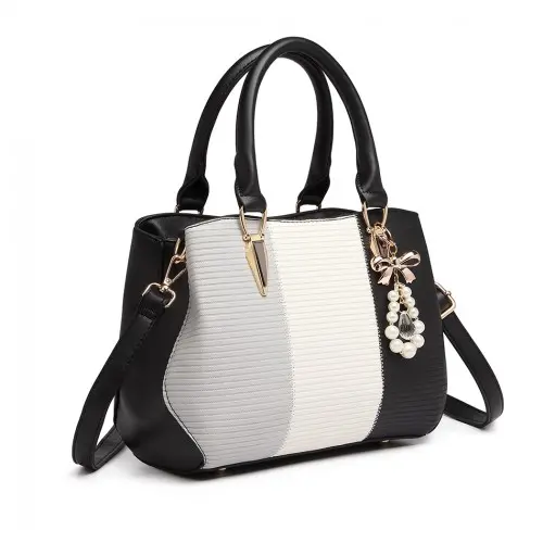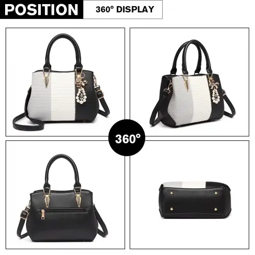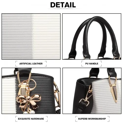 LG6866 – Miss Lulu Leather Look Colour Block Bow Pendant Handbag – Black