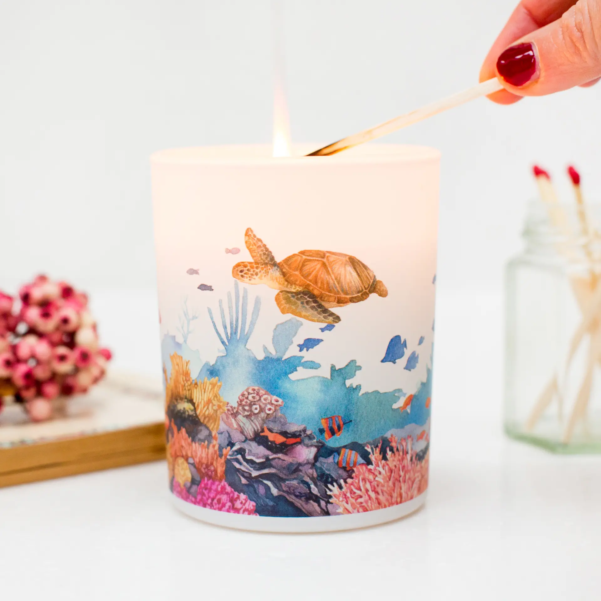 We are on a mission to save the planet’s wildlife. Our new line of candles includes six designs representing the world biomes: Desert, Forest, Freshwater, Grassland, Marine, and Tundra. Each candle sold protects 40 sq m (430 sq ft) of threatened habitat through our partnership with World Land Trust. Your purchase actually helps protect a piece of our planet. Amazing, right?
