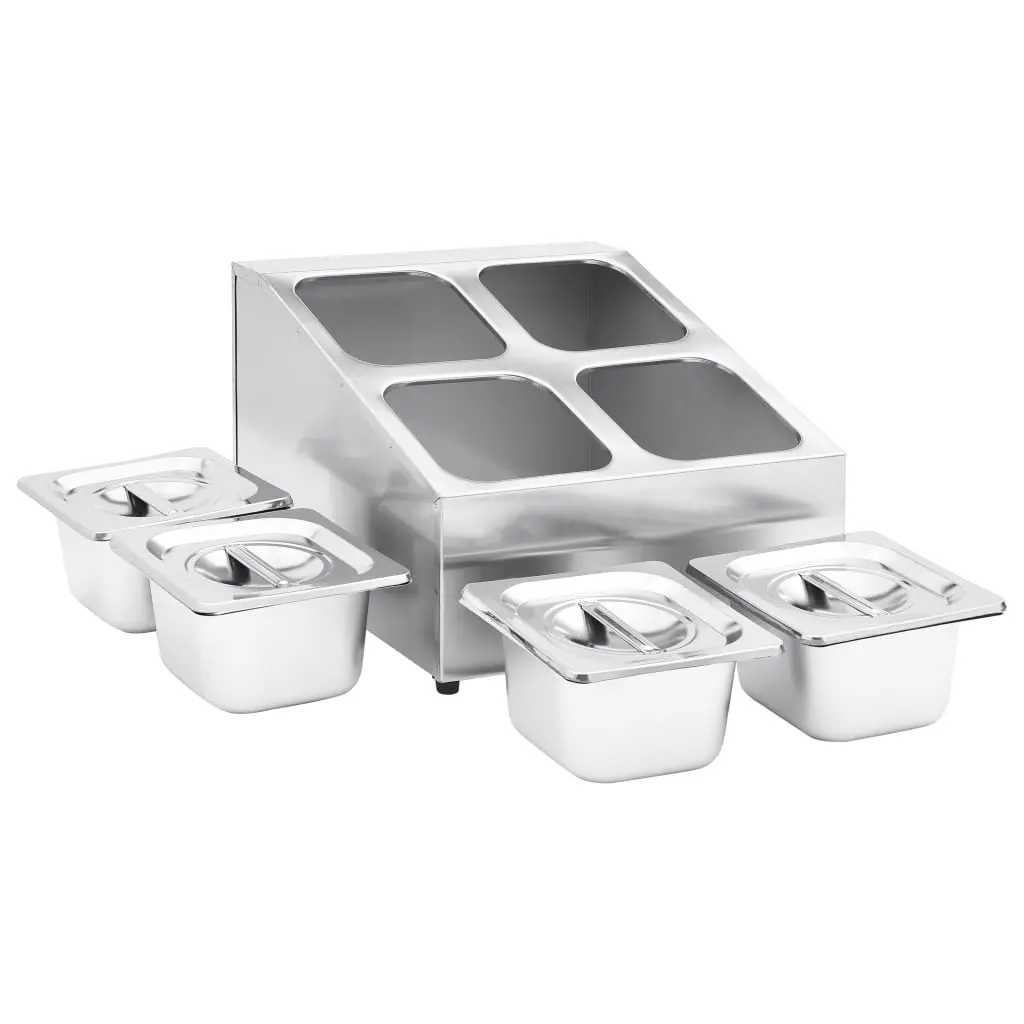 vidaXL Gastronorm Container Holder with 4 GN 1/6 Pan Stainless Steel