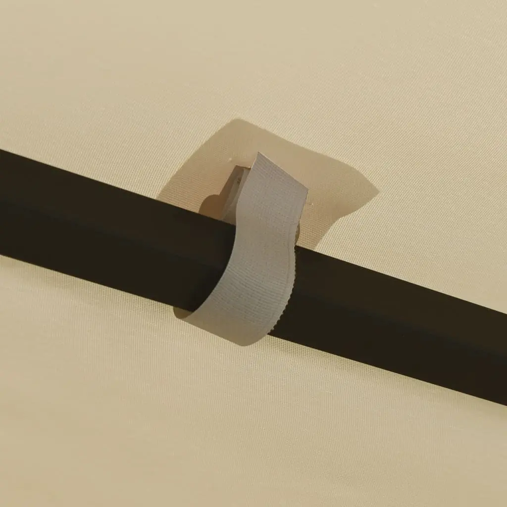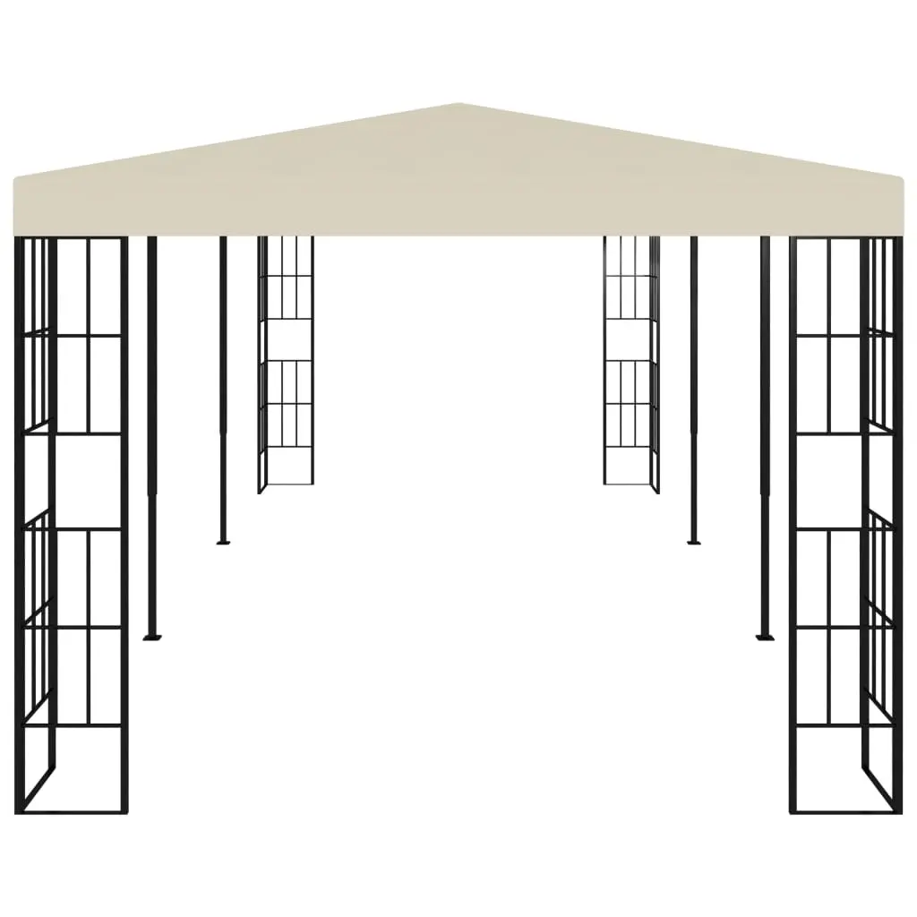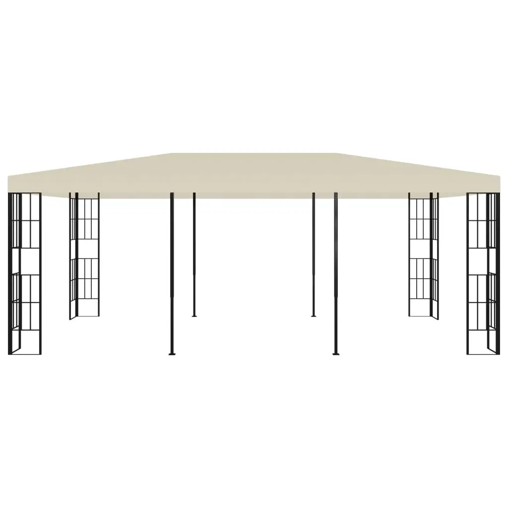 This spacious gazebo will make an elegant addition to your outdoor living space while keeping your family and guests cool and shaded on sunny days. The vented canopy will keep the sun and rain from spoiling the fun at family gatherings, barbecues, afternoon picnics, and birthday parties. The party tent has a sturdy steel construction with decorative square details and a polyester roof. The canopy has reinforced corners and hook and loop fasteners with which it is easily attached to the gazebo’s frame. It is easy to assemble. Note: The gazebo has not been designed as a permanent structure and it is not recommended to use it in extreme weather conditions.