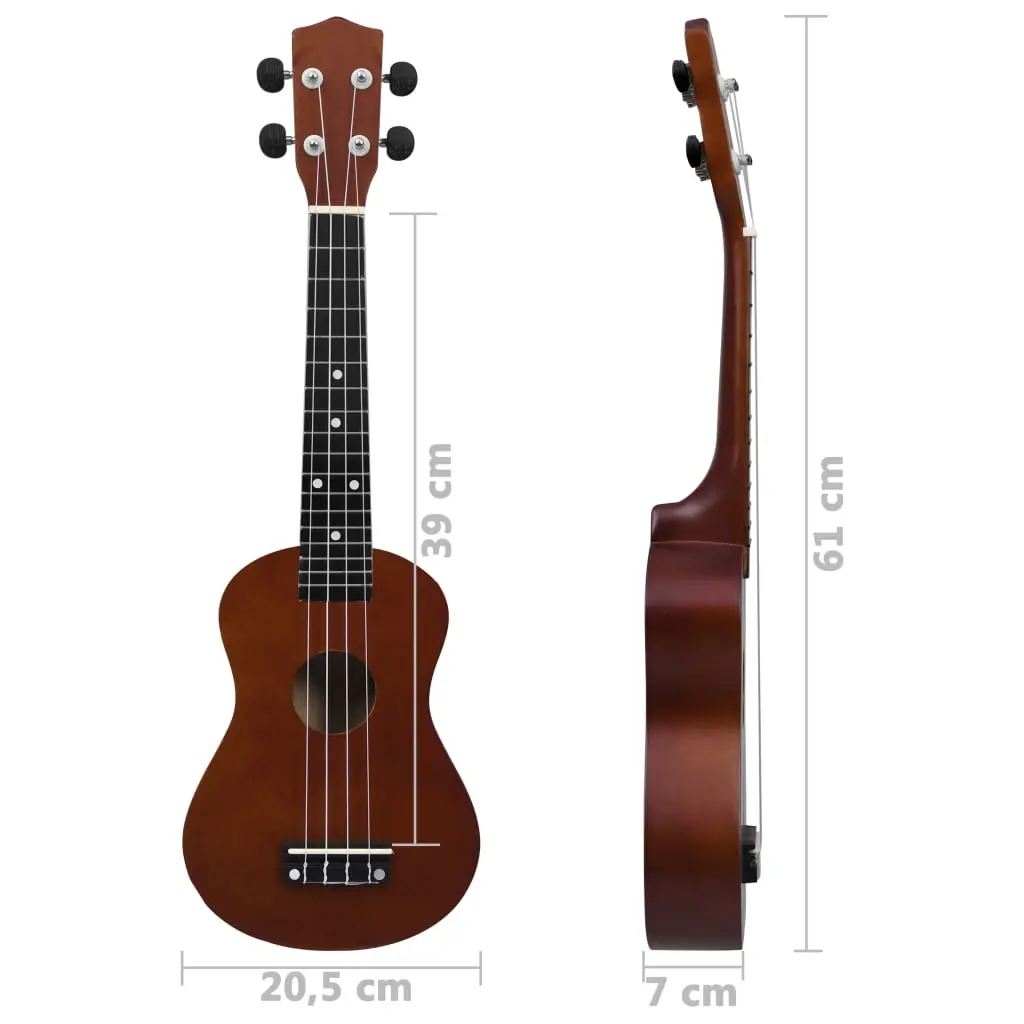 vidaXL Soprano Ukulele Set with Bag for Kids Dark Wood 23″